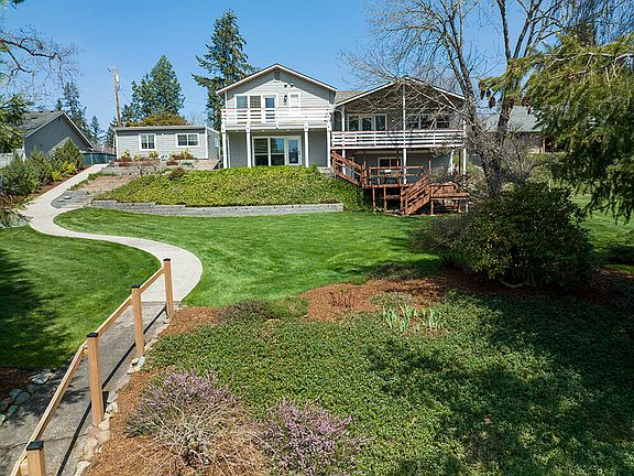 Rogue Riverfront Retreat......Finally, a Rogue riverfront home with class, space, separate guest/ADU and terrific low bank frontage....all in town! Sitting on .90 of a acre this remodeled and updated Craftsman style home has expansive windows overlooking the river and beautifully landscaped grounds. The home has an easy going open floorplan with liv room, completely updated kitchen, dining and exterior decking on the main. The kitchen features a large island, Bosch appliances, granite counters and many windows to bring the outside in. The primary suite with it's own decking is a fabulous retreat, as well as the office or ensuite 3rd bedroom. Lots of room to spread out in the family room, 3rd bedroom and full bath. There is also a 2nd kitchen area in the laundry room- which is large enough to be the hobby room or exercise area. Tons of storage throughout. Oversized 3 car garage, RV hookup and a furnished 1 bd ADU/guest house.