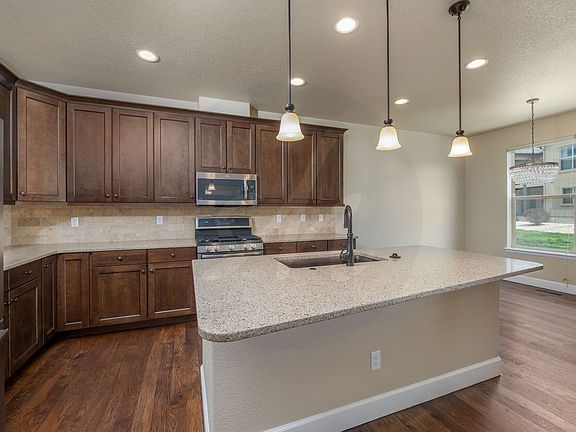 Discover luxury living in this impeccable 4-bedroom, 3-bathroom patio home in the prestigious Flying Horse community. This thoughtfully designed residence offers elegant low-maintenance living. Beautiful hickory hardwood floors flow throughout the open living areas, where the inviting living room with gas fireplace connects seamlessly to the gourmet kitchen. The chef-inspired kitchen features a center island, granite countertops, gas range, stainless steel appliances, walk-in pantry, and breakfast nook - perfect for entertaining and everyday living. The secluded back patio offers mountain views and green space, creating an entertainer's dream for grilling and relaxation. The main floor primary bedroom includes an elegant ensuite with a walk-in shower, dual vanities and an oversized walk in closet. A flexible bedroom/office, full bathroom, and convenient laundry room complete the main floor. The fully finished basement expands your living space with two generous bedrooms, full bathroom, wet bar and recreation area, ideal for guests, family fun, or home theater. Great location to main through fares, The Flying Horse Club, restaurants, dining and entertainment.