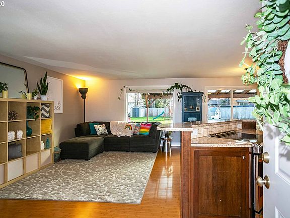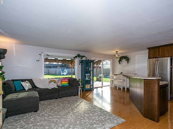 Beautifully updated 3 bedroom home w/ large stunning fenced in back yard. Oversized 2 car garage. Newer roof, vinyl windows, furnace, A/C, porch, driveway, paver patio, stove, dishwasher, garbage disposal, interior paint, blinds, carpet in bedrooms. This home lives large w/ an open floor plan that leads to sliding glass doors & out to a wonderful back yard oasis. Firepit, Play Structure, Shed, Raised Garden Beds, Ring Door Bell & Nest Thermostat all stay. Close in to stores, shops, Nike & Intel.