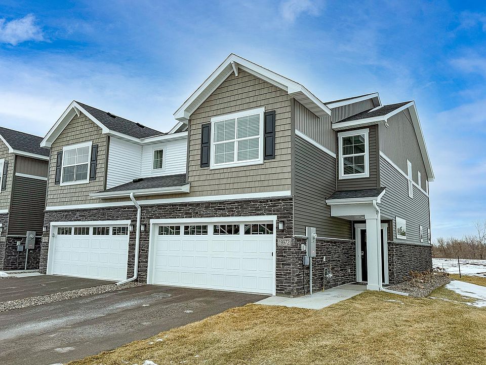 MODEL FOR SALE! Seller offering contribution toward buyer’s closing costs! JP Brooks presents the Grandview END UNIT MODEL townhome plan in Corcoran’s Hope Meadows community—a brand-new townhome development near Pheasant Acres Golf Course and just a short distance from Elm Creek Park Reserve. Experience an unmatched outdoor lifestyle with miles of trails, lakes for kayaking, and year-round activities. Enjoy peaceful living with the conveniences of nearby shopping, dining, and easy access to major roadways connecting you to the Twin Cities and beyond. The main level features a spacious living room with an electric fireplace, open dining area and roomy entryway. The kitchen showcases white cabinetry with stainless steel appliances, a walk-in pantry, tile backsplash, gas stove, large center island with single basin sink and quartz countertops throughout the home. Half Bathroom on main level. The upper level includes a loft area, laundry room and 4 Bedrooms with walk-in closets. The primary suite offers a vaulted ceiling with ceiling fan, double sink vanity, luxury tiled shower, linen closet and a huge walk-in closet! The exterior of this end unit offers an exclusive side yard in addition to it's 10’x6’ backyard patio for outdoor enjoyment and HOA-maintained landscaping and snow removal for low-maintenance living. Onsite-finished trim for a high-quality look. Come tour today!