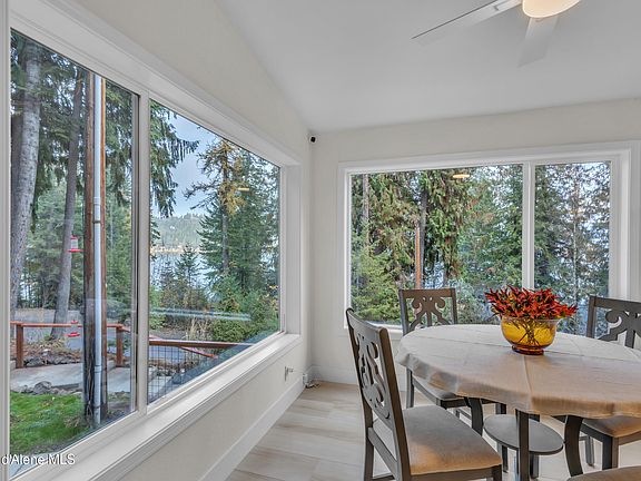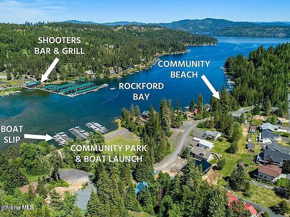 LAKE RETREAT WITH BOATSLIP. Nestled along the shores of Lake Coeur d'Alene, this secondary waterfront property offers views of the shimmering lake, framed by majestic fir trees. Easy winter access by all-year maintained county road. Located within the desirable Woodland Shores community in the heart of prestigious Rockford Bay, this home grants you exclusive access to a private marina with upgraded docks and a swimming area. The marina and docks are being completely redone and will be brand new! Seller has/will have paid for their portion of this amazing community improvement for the buyer to step in and enjoy immediately! The lot is ready for the construction of a larger home, but you can comfortably enjoy the existing residence, which is a real property and features power, a private well, and a septic system. The house has been recently updated, including a new roof, heat pump, and wood stove. It boasts energy-efficient double-pane windows, a Nest thermostat, and a new furnace. and water heater. Inside, you'll find fresh paint, beautiful LVP flooring throughout, and brand-new appliances. The bathrooms have been remodeled to include modern walk-in showers. The private well comes equipped with a conditioning system. Starlink High-Performance internet is included for fast, reliable connectivity. Conveniently located, county-maintained roads connect you to Coeur d'Alene, the Black Rock Golf Club, and the Circling Raven Golf Club. Enjoy the popular Shooters Bar & Grill, just minutes away!