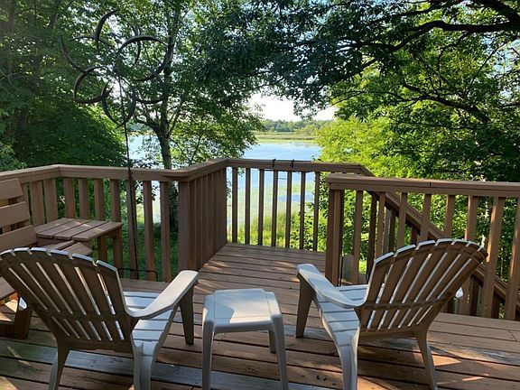 Much loved one-owner lakefront home on East Twin lake, a small but deep lake. Enjoy west views and beautiful sunsets. Solid construction with updates throughout, done with quality and durability in mind. Private wooded lot. The house is set back from the road with a private cement drive leading to the home. Large vaulted open living area on upper level. Updated kitchen featuring granite countertops, stainless appliances and walk in pantry. Living room/dining room with walk out to huge deck overlooking the lake. Master bedroom with walk out to screened porch on lake side of home. Lower level offers two large bedrooms and a very large family room with walk out. Oversized whirlpool tub in lower level bath. Twin Lakes Park and public access to lake just blocks away.
