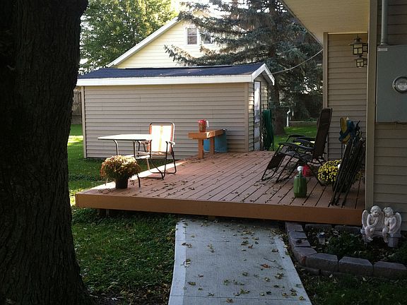 new windows were installed in 2005. A 4 car detached garage we built in 2007- 1320 sq ft. We installed new siding in 2012 & a new roof put on in 2013. We completely gutted and redid a brand new open concrete front porch in 2011. My husbands favorite spot is the wood shop which has all new interior in 2008. It use to be used as a 1 car garage but he made it into a wood shop. The bathroom was gutted and completely remodeled in 2012. We have a pump house behind the house with a Peacock Water softening system that will stay (we own it), along with a deep freeze. We turned an outbuilding into a chicken coop. There is a 24 ft above ground swimming pool with a new deck. A new deck was put on the back of the house in 2013. All new sidewalks were poured in 2011. The kitchen and living room ceilings are new. The kitchen recently updated 2 months ago. New cabinet doors, additional lighting added, newly drywalled. We also purchased a brand new hot water heater this year.