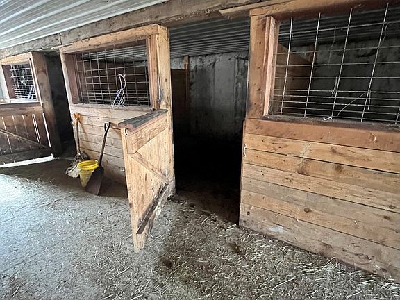 Custom Amish built home for large family occupancy. 9 bedrooms, large family room and dining area with hardwood floors throughout. Full basement (1/4 finished). Home is situated on 34+ acres, improved with 2 small outbuildings, a large 2 story barn with 8 divided horse stalls and tack shop and sturdy top level for hay storage.