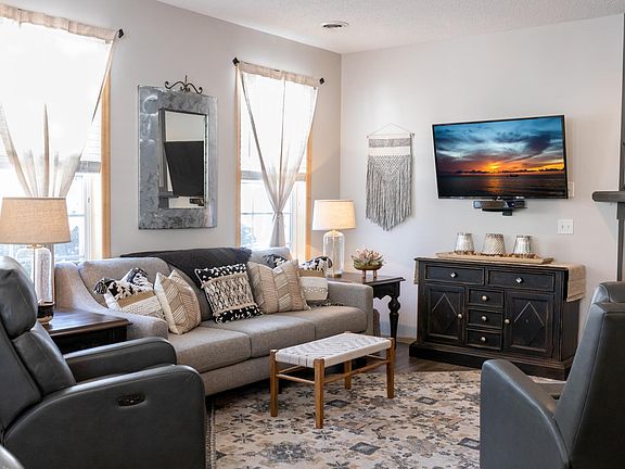 is long and it shows! The living room is cozy & inviting w/ great natural light & gas fireplace. Kitchen