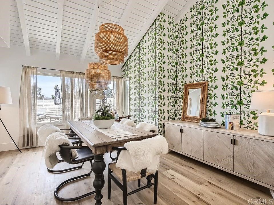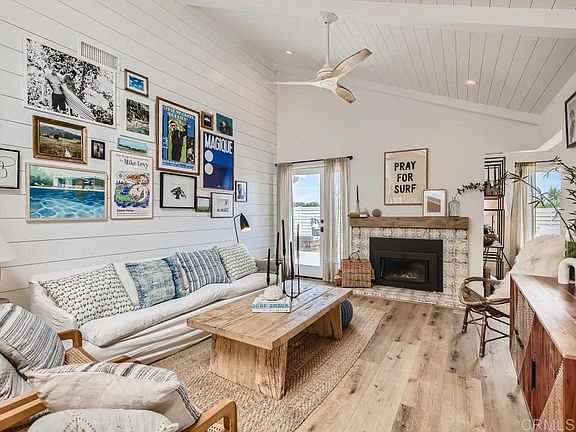 Designer's Dream come live in this beautiful single story coastal home. Decorated with every detail you would ever want. This home is located in the desirable neighborhood of Palisades Pointe. A 3 bedroom 2 bath home, master bedroom has large vaulted ceiling opening onto your outdoor seaside retreat back yard. Master bathroom has Victorian cast iron tub, handmade tiles and shiplap walls Kitchen is an open concept with the industrial chic Big Chill refrigerator and stove. All New PDI wide plank flooring, sky light in the living room and new designer light fixtures, a wholehouse fan. Nest thermostat central AC and heat. Fireplace in the living room has a special feature, the cleaning burning wood insert fireplace. NO detail or quality has been missed in this stunning home. Huge enclosed front yard, ready for your design and large beautiful backyard with mountain views, outdoor kitchen area, covered patio dinning, sunny retreat area. Your Opportunity to have the best schools, easy access to downtown Carlsbad, farmers market, restaurants, close access to Hwy 5 and 78 and best of all mins from the Beach.