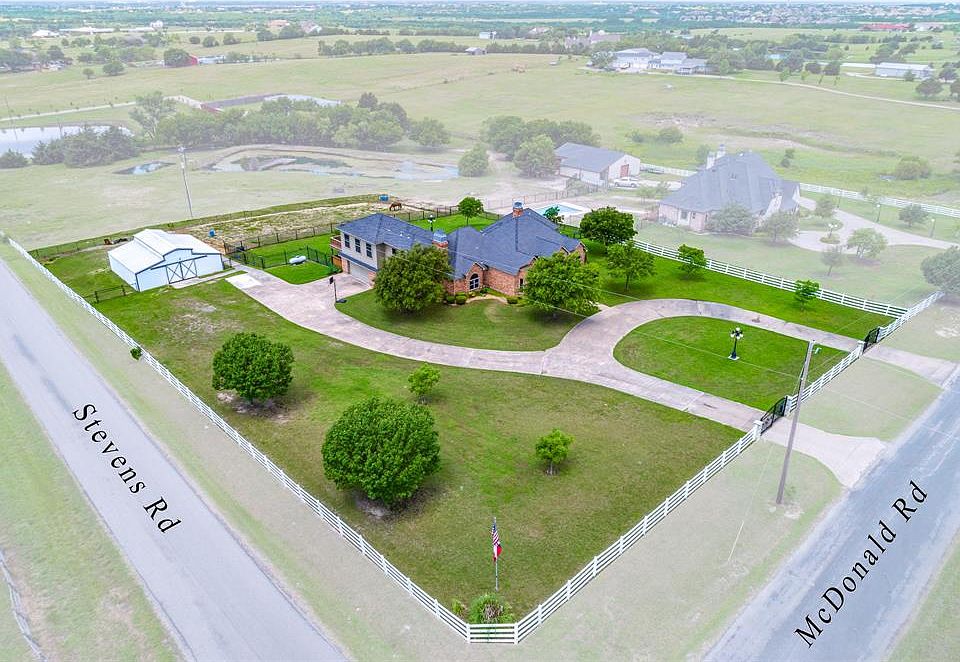Horse lover's DREAM! Stunning home features horse barn, large infinity pool and spa perfect for entertaining or soaking in the sun, and million dollar views overlooking a pond, rolling topography, and scattered trees. This picturesque property is the perfect combination of rural country life less than 15 minutes to Rockwall or Forney. 4 bedroom, 3 bathroom home features a modern style with a rustic twist, theatre, upstairs living&bedroom w balcony, WBFP in the large dining room and living room, study, large bedrooms, outdoor living area, spacious kitchen with stainless appliances, dual ovens, and granite. First level Master Suite includes sitting area & flows into luxurious master bath w large walk-in closet.