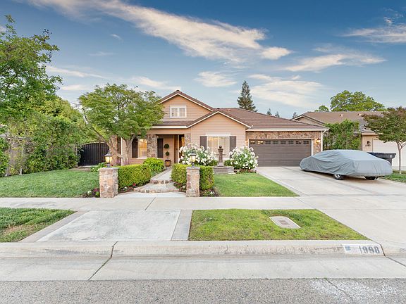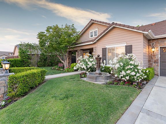 Located in Tulare's Del Lago Neighborhood, this home obtained a complete remodel in 2016, you will see that no expense was spared. The home shows elegance with a modern flare. You will be pleasantly surprised when approaching the home, appreciating the artistry of flagstone around the garage, on the outdoor pillars, beautifully designed walkway with pillars and lights, and a calming water feature in the front yard. The interior of the home is a masterpiece, an open floorplan with laminate wood flooring throughout, a remodeled kitchen with oversized island, granite counter tops, mosaic tile backsplash, Kitchen Aid appliances and plenty of storage space. It opens up to the dining room and living room. This home has plantation shutters throughout. The oversized primary bedroom has leaded glass French doors that go out to the spacious backyard. The primary bathroom will not disappoint! A custom shower with dual shower heads, handheld units on each side and a center rainfall feature, custom tile work and two niches with mosaic tile and lighting. A double vanity, custom closet organizers in the Primary closet are additions to this gorgeous bathroom. Continuing with elegance, the main bathroom has a mahogany vanity with granite counter, a Jacuzzi tub, custom tile work, a niche with mosaic tile and lighting. Additionally an indoor laundry room, and two other bedrooms are part of this home. Going out the eight foot leaded glass door to the expansive backyard. The backyard offers paved walkways, a fenced in dog run, two gazebos, a Tuff-Shed for storage, two custom wrought iron gates with copper vein powder coating, on both sides of the home. The two-car garage is completely finished with two-tone paint, custom storage cabinets, epoxy coated flooring and ceiling fans. Additionally, RV parking adds to the many features of this home.