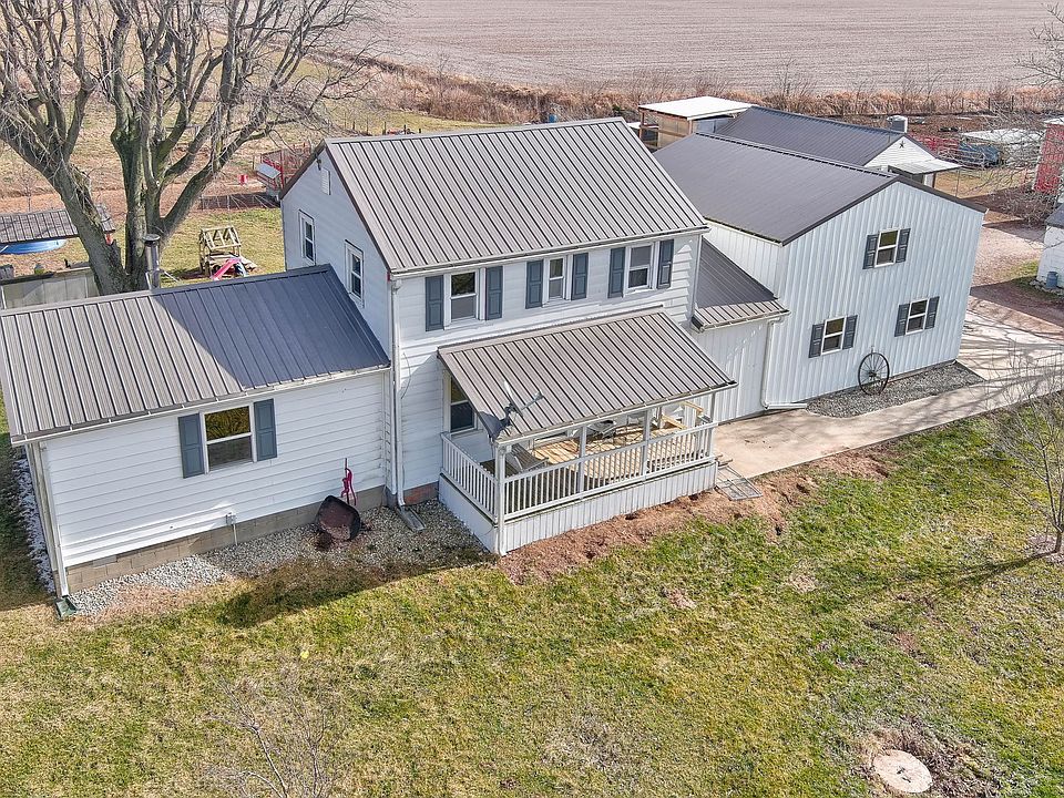 Property offers a two story farm house, cattle/horse barn, shop w/ electric & concrete flooring, several fenced paddox w/water availablity, chicken coop with automatic water run to this area. Outbuilding w/R30 insulation-perfect for a small store, craft room, kids playhouse - concrete flooring/electric and heat. Each side is 16x16. Seller is leaving their exterior walk in freezer that is located behind one of the outbuildings. Home features a step saver kitchen, formal dining area opening into the large living room. Upper level has three bedrooms. There is a 2.5 car attached garage space. The overhead door services one vechicle. Covered front porch is perfect to enjoy summer evenings at this Shelby County Farm.