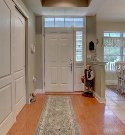 Ideal Village Grande location! One of the premier lots, backing to the pond, private wooded area and walking trails. When entering the home you will be greeted by trey ceilings in the foyer. The open floor plan features 2 Bedrooms 2 full bathrooms, two separate dining areas and a bright sun room to bring in the private views out back. The living room features hardwood floors, crown molding, recessed lighting and a cozy gas fireplace to gather around. The outdoor private paver patio cannot be missed!.