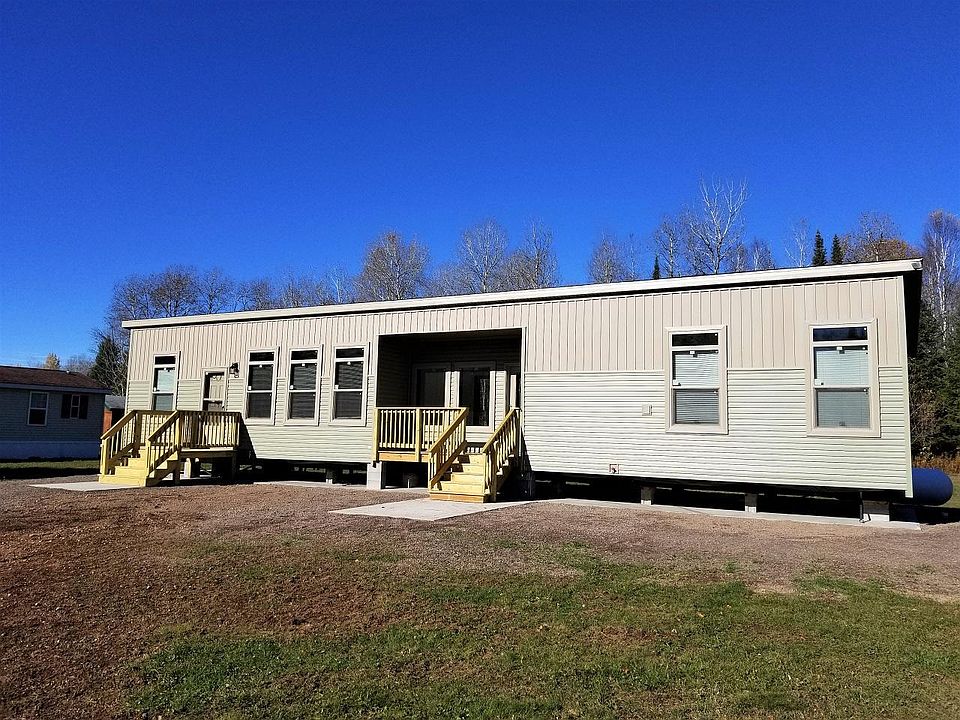 Brand new home waiting for you to move right in. This 2 br, 2 bath manufactured home features open living concept living room, beamed ceiling, ceiling fan, oversized windows w/beautiful view with transom above, dining area w/view of back yard, kitchen w/attractive cabinets, counters, refrigerator, stove & microwave. Master BR & bath & guest BR & bath on each end for your added privacy. Includes laundry area hookups, laminate flooring throughout entire home. Maintenance free vinyl siding, insulated skirting soon to be professionally installed, R-22 floor insulation, 200 amp electric, LP gas FA heat, large back yard waiting for your firepit & fun. Real Estate NOT included, lot rent $295 month includes spacious lot, shared well, septic, blacktop road maintained by owner. Plus community pickle ball court for your enjoyment, Storage pod (8'x20' w/8' ceiling) available to rent perfect for ATV-Snowmobiles-Bikes. Easy access to ATV Snowmobile trail 17, Bike trail too! Adjoins State Land!