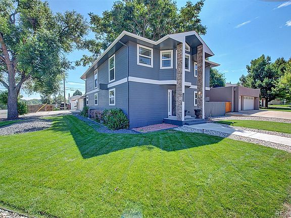 Location. Location. Location! Welcome to this one-of-a-kind Applewood home, featuring upgrades throughout & a truly one-off layout! When arriving, you'll love the easily maintainable, lush front yard, both on 20th & Xenon & welcoming curb appeal. Front features smart sprinkler system & rear is plumbed to easily add a rear system. Upon entering you'll love the upgraded vinyl plank flooring found throughout the home. Off the entry is a main-level bedroom, which could be used as an office/den. Continue through the home & enter the open living room complete with custom corner entertainment center & direct access to the dining space & kitchen. A see-through gas fireplace sits between the living room & recently updated kitchen. The kitchen features an island, newer cabinets, granite countertops & all stainless steel appliances. The main level is finished off with a dinning space, fully updated 3/4 bathroom & laundry room/mudroom complete with utility sink. Upstairs you’ll find the large primary bedroom with west facing large bay window complete with mountain views & primary bath. Primary bath features large walk-in shower, double vanity & walk-in closet! The upper level is finished off with a large 4-piece bath that has access through either of the two additional upper-level bedrooms. The interior is completed with a finished basement that can be used as a large bedroom or rec/family room. Featuring several recent upgrades, including all new windows above grade, boasting natural light & sense of privacy! The backyard features a deck with seating area built around mature trees, perfect for Colorado weather! There’s a smaller, easily maintained backyard space that can be finished off with grass or xeriscape as preferred. Just off the detached 2-car garage is a large concrete pad that circles behind the garage for those rvs, boats or other toys! Don’t forget about it’s incredible location, minutes from shopping, dining & easy access to I70! This one is sure to impress!