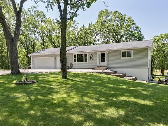 Lovely rambler with lists of updates. Gorgeous Hickory cabinets and floors. Stainless Steel appliances. Enameled trim. Maintenance free windows. Vaulted knockdown ceilings. Tile flooring and bath surround. Main floor laundry. Lower level walk out basement and additional living space. Maintenance free siding, over 2 acres of mature lot with large trees and a tree fort the kids will LOVE. Detached 26 x 34 garage/shop with gas heater perfect for storing the toys!