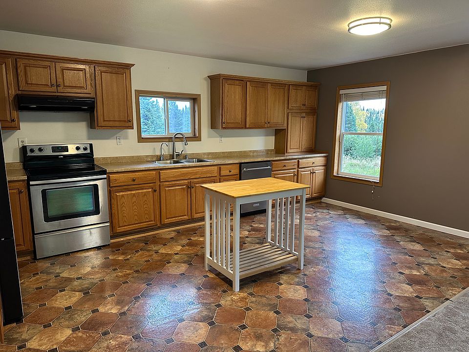 Nice, clean, comfortable family home on beautiful and secluded acreage in quiet area of Kasilof directly off paved road. Approx. 20 min. drive to Soldotna and 25 min. to Kenai. Master bedroom, kitchen, bathroom & living room upstairs. Two bedrooms, new washer & dryer, mechanical room, and extra living/family room area downstairs. Arctic entry, circle driveway with plenty of parking, and spacious well-defined lawn area. Tenant responsible for all utilities (HEA electric, heating oil, option to take over SpitsSpots internet). Tenant responsible for all trash removal, lawn maintenance, and snow plowing. No smoking/vaping. Pets negotiable with extra $50 monthly rental fee and $500 additional security deposit. Prefer dogs only but are willing to discuss cats with the right tenant. Lease will run from 10/15 to 5/31 to start with the option to renew for 12 months starting 6/1.