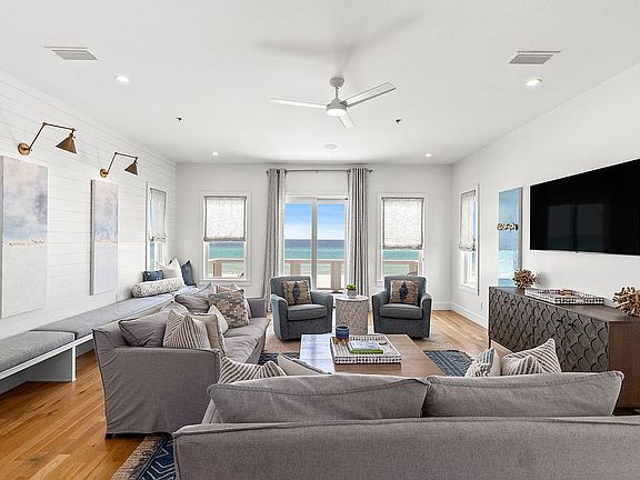 Beach side living at it's very best! Newly remodeled by renowned, long time local builder, Alan Ficarra, this elegant home has it all! In addition to it's beach front location and private beach access, the home features 4 beach front decks and a 4th story tower that provides expansive, 360 degree views to the horizon! 3 master bedrooms with en suite baths, 2 bunk rooms, and a third bunk area provide plenty of privacy and room for family and friends to have a memorable beach vacation. A brand new splash pool and newly renovated game room will provide hours of entertainment both indoors and out! A whole house (indoor and out) multi-zone Sonos sound system will allow owners and guests alike to set the perfect vibe for their stay at the beach!