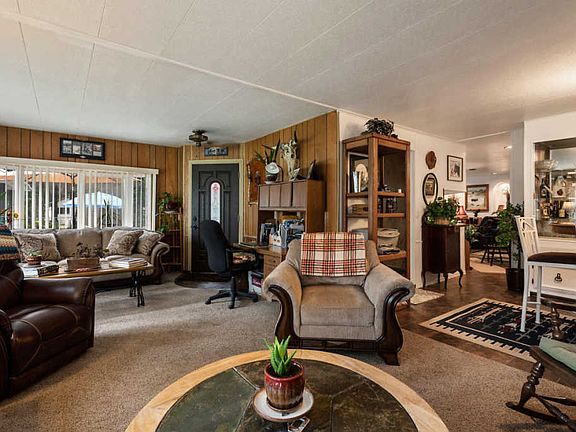 Older remodeled mobile home, (real property) sold as is. on 2.27 flat, usable acres. Features 2 bedrooms, 2 baths, 1776 SF, built in 1976, detatched 28×48 3 bay garage with electric heat plus woodstove & 50 amp outside outlet. Small guest house. Home is real property and in a great private location. Close to twin lake, spirit lake, 30 min. From coeur d alene and aprox. 45 min. From Spokane. WA Lots of storage and room for your toys, with RV hook ups. Two enclosed porches and covered outdoor patio. Decking on two sides of the house with hot tub and gazebo.