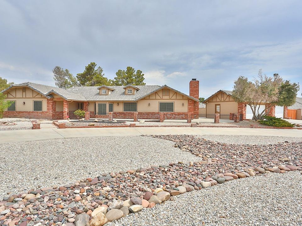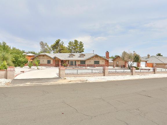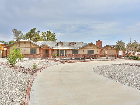 BEAUTIFUL POOL HOME LOCATED IN PRESTIGIOUS DESERT KNOLLS!! This property is captivating from the moment you pull onto the HUGE CIRCULAR DRIVEWAY. Situated on a corner lot, this single story home has wonderful rock landscaping, plenty of parking, and a 3 car garage with new EPOXY FLOORING. Entering the home you will see the Stunning Engineered Wood Flooring and Brick Fireplace. Keep going to the Large Family Room and spacious dining area that opens to the kitchen. Granite counters, stainless steel appliances, beautiful wood cabinets and tile floors in the kitchen. Recessed lighting is throughout the home. Right next to the kitchen is a laundry room and bathroom. The master bedroom has a walk-in closet, dual sinks in bathroom, and custom tile shower. Entering the backyard you'll see tons of cement work, basketball hoop, Viewing Deck, a New Large Storage Shed and a GORGEOUS POOL with diving board and basketball hoop. HURRY before this home is gone!