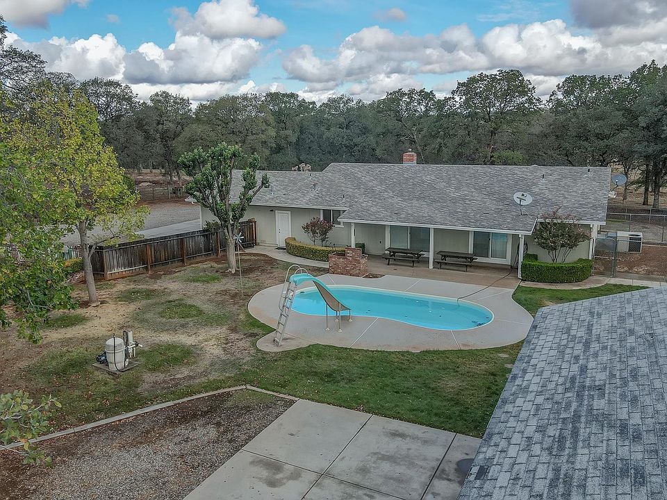 Need to sell a home to buy? No problem, Seller will look at contingent offers. This is it! 3-bedroom ranch style home, with garage, shop, inground pool, fenced for livestock and more! Secluded and quiet, this home is set back on 5 acres, with a 2-car attached garage, 3 car detached shop, carport for equipment or hay, in ground pool, fenced and cross fenced for horses. Property accommodates a 3-bedroom 2 bath home, with open concept from dining room to kitchen and cozy living room seating. Fully landscaped yard beautiful setting for BQQ's and family gatherings. New carpet just installed in the living room and brand-new septic just put in.