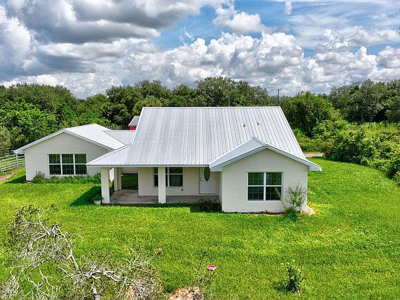 2 LOTS AT 2.5 ACRES FENCED INDIVIDUALLY WITH CATTLE GATES! NEW METAL ROOF NEW AC. CLEAR 4 POINT INSPECTION & WIND MITIGATION PERFORMED RECENTLY..HUGE 4/2 W/ seperate building for 4th bed room. Or can be used for man cave, office, business, utility room, she shed, day care, crafts room, game/media room.TILE THROUGHOUT HOME & 4th bed room..OR RENTAL OPPORTUNITY. BRAND NEW CARPET IN 3 BEDROOMS.Freshly painted RED BARN WITH 6 STALLS AND FEED RM W/DRIVE THROUGH CONSOLE.. PLENTY OF PARKING/ Horse riding ON LUSH GRASS framed shade areas on PRIVATE CORNER W/ FRUIT TREES.BRING YOUR WHOLE FAMILY, RV, ATV, HORSES, live stock, pets & riding vehicles, toys, ,hunting gear AND STILL HAVE AMPLE SPACE! Tons to explore at the Kissimmee State Preserve just down the road.