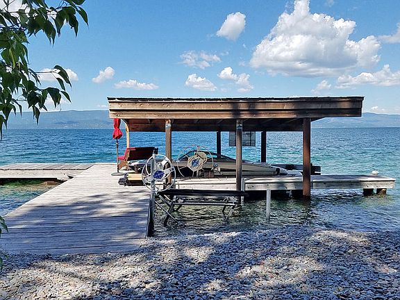 Remarks: Private eastshore location on Flathead Lake. Main home is your oasis in the forest tucked at water's edge 9 miles S of Bigfork. Frontage has a dock with boatlift & double Jetski lift stretching 165 ft w/ premium gravel beach. Open concept encompasses the main floor with fireplace on the south end, large windows capturing the lake views for miles in the middle and a gourmet kitchen at the north end. Enjoy evenings on the decks, one covered, other w rock waterfall. Lower level is amazing Master Suite. Guest House is lg 2+ bedrm home that can sleep 6+ comfortably, w fireplace. Expansive floor to ceiling windows are a feature of the living room. Forest covers the acreage, a winding driveway coming right off Hwy 35. Call Scott Hollinger at 406-253-7268 or your real estate professional. Radon: Well Log Available