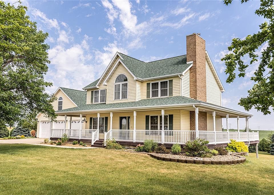 Check out this dream acreage in the Linn Mar School district. Enjoy morning coffee with beautiful views of the Iowa countryside from your wrap around porch. Plenty of room and privacy with over two acres of land. This large two story home offers 5 bedrooms and 3.5 bathrooms. The main level offers a nice kitchen and dining area with all appliances included, formal dining room off the kitchen as well as a family room. Off the kitchen is a half bathroom and main floor laundry. Upstairs you will find 3 bedrooms and two bathrooms including the master suite. The master suite offers a walk-in closet and full bath with a whirlpool tub and separate shower. The walk out basement has two more bedrooms and the 3rd full bath along with a large rec room! The heated 3 car attached garage has plenty of room for all of your needs plus a finished loft above perfect for an office or play room. There is also a detached 24x24 shop! New roof!