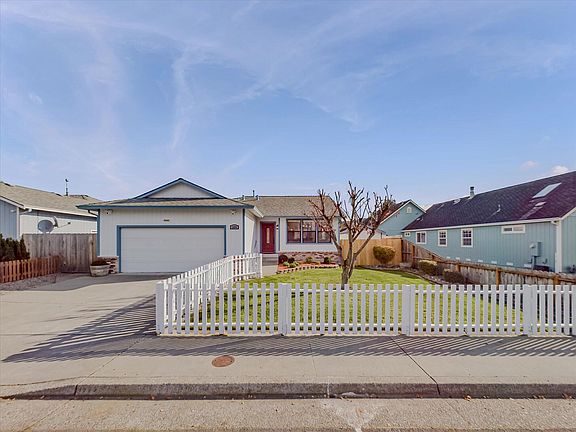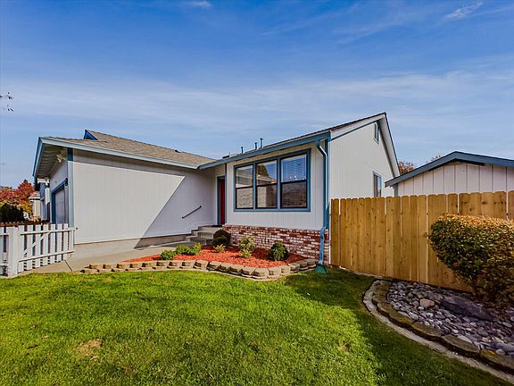 This turn-key three bedroom two bathroom home is in impeccable condition, and located in a desirable neighborhood. The large open living space creates flexibility of use and a welcoming atmosphere with vaulted ceilings, complemented by a kitchen adorned with a breakfast bar and Corian countertops. The primary bedroom boasts a large walk-in closet and bathroom featuring dual sinks and a large walk-in shower. The seller has refinished the wood floors, installed new carpet, and added fresh paint throughout. Step outside to the well-maintained backyard, complete with a newly stained deck, tool shed, and sprinkler system. Enjoy a two car garage with an added storage above for additional ease. Don't miss out on the opportunity to view this beautiful home