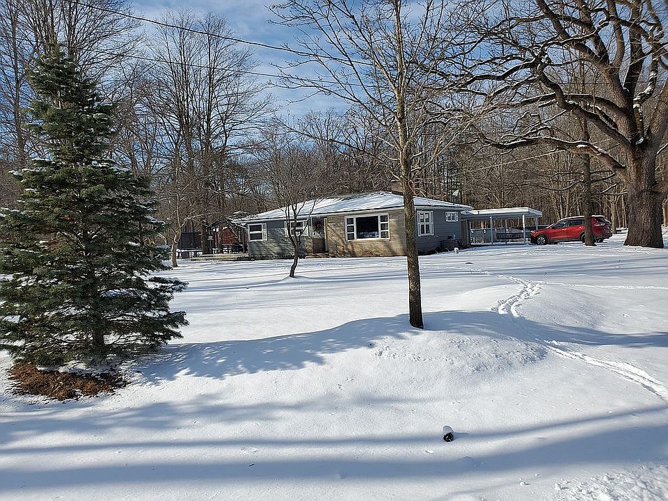 Totally renovated ranch home on 3+ acres with 2 out buildings. Updated electrical and plumbing, new septic, hvac, ejector pump. All new flooring, cabinetry, lighting and gas log fireplace. One car garage with attached carport, restored out buildings, new deck and beautifully landscaped. Finished basement with 400 sq ft of living space, a large bedroom and full bath. This home is move in ready with appliances included. Must see!! NO LAND CONTRACT OR RENTAL.