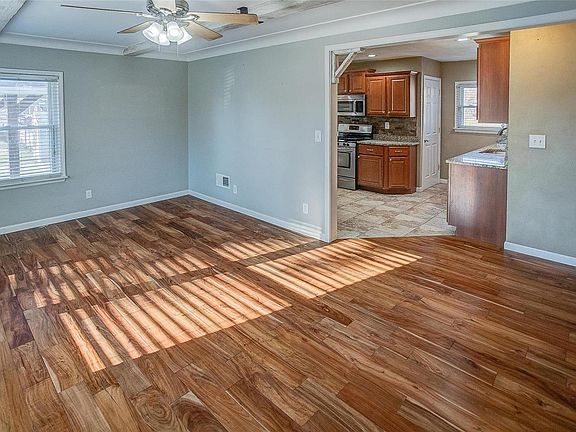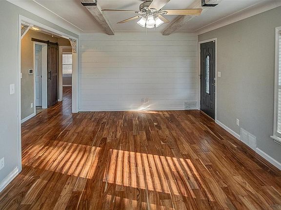 Move-in ready! This updated home is ready for a new owner! Stunning handscraped wood floors throughout living quarters. Warm-toned cabinets and complimentary granite countertops throughout the spacious kitchen which offers loads of storage. Gas range and stainless appliances. Beautiful ceramic tile flooring throughout the kitchen and separate dining area. Plenty of space to host all in the main living room. Two large bedrooms and full bath round out the main floor. Large walk-in closet in primary bedroom with sliding barn door is sure to hit the mark! Additional hand-crafted, sliding barn doors and living room ceiling beams are the icing on the cake! The full basement houses the laundry area and an additional workshop. Additionally, the large, open lower-level is awaiting your personal touch! Ceiling has been finished with recessed lighting. Perfect for added living space, play room, or entertaining! Water Heater new Dec 2023. Schedule your appt to tour this charmer, today!
