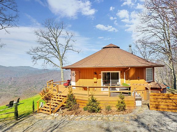 This home is uniquely built and situated on the mountain to live quietly and breathe the fresh mountain air, The expansive windows of this round (Deltec) home frame the million dollar views in every direction. Sit among the treetops and take in direct, unobstructed views of the Smoky Mountains and the Pigeon River below. The west deck faces Mt. Sterling, Purchase Knob, Cataloochee, and Tennessee. The north / East windows look toward the Appalachian Trail and Max Patch. This is a one of a kind opportunity to have everything a home should have. Feel worlds away, but find comfort knowing that restaurants, grocery, and medical are within a 30 minute drive and the home is equipped with a whole house generator to offer you and your guests peace of mind. Whether you choose to live here full time (as the current owners do), use it as a second home, or STR (Airbnb/VRBO) you will never be the same when you incorporate breathtaking sunrises, sunsets, and star-gazing into your life everyday.