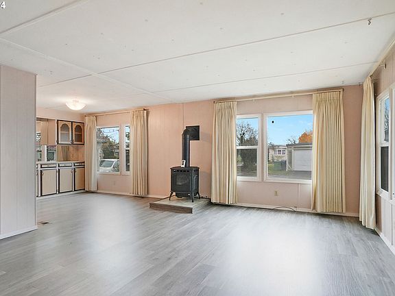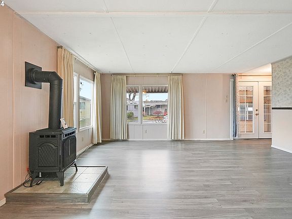 Rare, well maintained, double wide with gas line to home in Woodburn Senior Estates! This Two bedroom, two bathroom home lives as two en-suites. Although community has a laundry facility, this unit has it's own washer and dryer, that's included in purchase! Updates within last 3 years; gas line, Vinyl windows, fireplace stove, furnace, electrical panel, fridge, and flooring throughout home. Seller still has home inspection from two years ago to share with potential buyers. Park rent covers maintenance, sewer, prorated water, club house and trash. Seller willing to help buyers with their move by paying in advance of four months of park rent at closing! Home is contingent upon buyer(s) approval from 55+ Park.