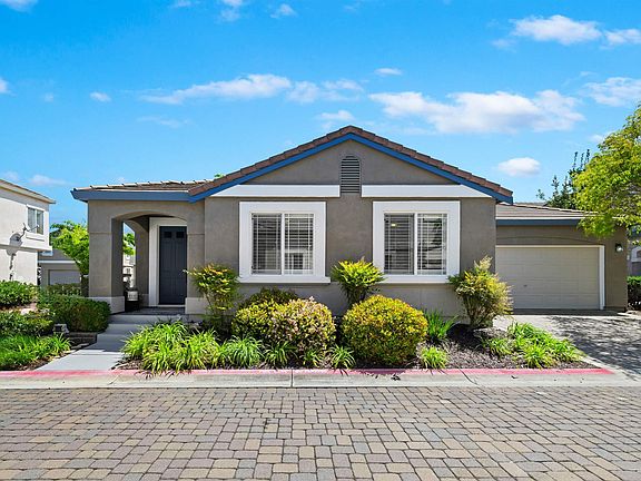 NEWER ONE STORY with large covered WEST facing front porch and spacious corner-lot location. Once you step inside you will find a spacious great room boasting hardwood flooring, plantation shutters, recessed lighting, two-tone paint, fireplace and ample natural light. Enjoy the open chef-style kitchen with gas range, newer stainless steel appliances, slab counters, and tile floors. The primary bedroom features vaulted ceilings, ceiling fan, plantation shutters, walk-in shower, and a slider to the backyard. Well manicured backyard with large paver patio, custom arbor, newer fences and no side neighbors. Attached two car garage and indoor laundry! Just a short walk to community pool, nearby elementary school, park, and shopping. Do not miss this one!!!