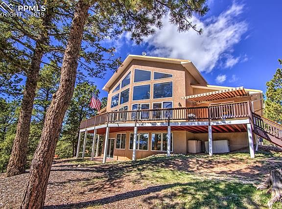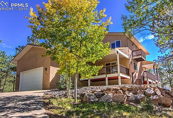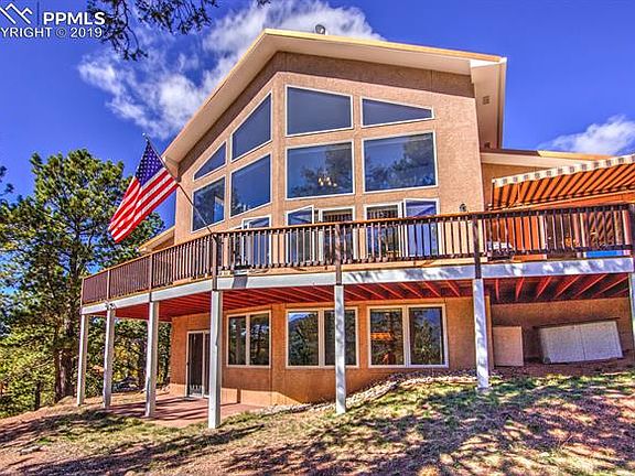 Views, views, views from this amazing home in the mountains! Home has been well cared for, with new redwood decks, a new metal roof, a new 720 sf shop has been built, new oak hardwood flooring on the main level. Great room spans soaring ceilings, 20 feet high, impressive windows floor to ceiling. Main level living, formal living room, dining, and breakfast nook off the kitchen. Walkout to the deck, w/ Sunsetter awning included. Large master suite w/ private deck attached. Master includes 5 pc bath, & walk-in closet. Upper level 1/2 story includes two bedrooms and a 3/4 bathroom, loft overlooks to the great room! Lower level recreation and family room, feels open and spacious with 9 ft. ceilings and large full sized windows, with a walkout to the lower patio. Solid 4 panel wood doors, Kolbe windows and sliding patio doors. An additional large bedroom on this level, used currently as a den, situated for guests with a full bath and double sinks. Lower level office, can also double as an additional bedroom if necessary. Great storage space with built-in shelves as well. Located on almost an acre and a half, an oversized 2 car garage, in addition the new detached garage allows for extra storage of toys and for the tinkerer to use, heated with two 5000 watt electric heaters to keep the chill off, on a separate meter, w/ 200 amp service. The 22kw Standby Generator is equipped with an automatic transfer switch. The home is located just 20 minutes SW of Woodland Park, and only 50 minutes to Colorado Springs. Nearby hiking trails, and National Forest access, also only 1.5 hrs to local skiing and the Continental Divide. Trophy trout fishing is just 30 minutes to 1 hour away!! Take a peek at what the mountains have to offer!!!