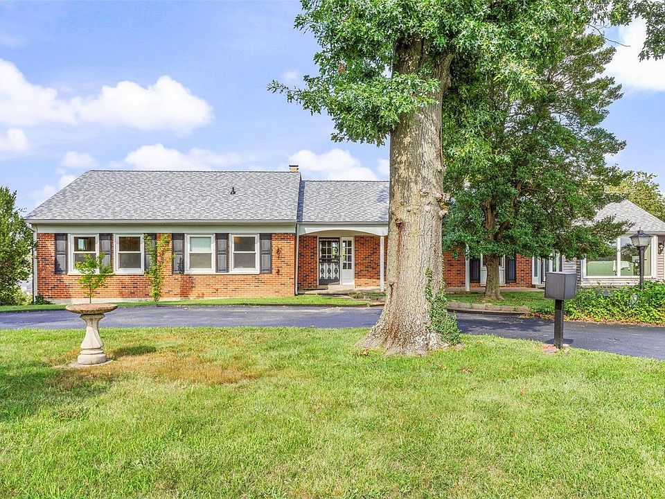 FESTUS BRICK RANCH! Beautifully sited on 2 ACRES (+-) overlooking a stunning farm and valley! GREAT BONES! Brand new ROOF, updated windows, updated bathroom too! There is more to do but with 2500SF on the main floor, the possibilities are HUGE! 5 bedrooms total, 3 full bathrooms, vaulted ceiling in family room, beautiful picture windows & an open floor plan for entertaining. The 40 remote solar panels will offset your electric bills and have a transferrable warranty. The home still retains its 60's mid-century looks which you can definitely capitalize on as you update! Formal Living room with fireplace, formal dining room, sunroom for those pretty days and very large family room with fireplace for when friends are over. The Galley style kitchen features custom cabinets large pantry and Jenn-Aire appliances. Main level bedrooms (3) are roomy with double closets. The LL boasts a 4th & 5th bedroom, an additional full bath, a family room w/ kitchen & fireplace. The circle drive seals it! Additional Rooms: Sun Room