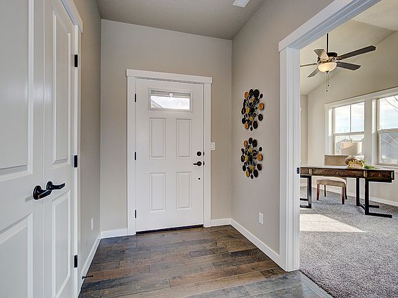 A bright sunroom off the entryway is the highlight of this special split bedroom layout. Sunrooms offer a beautiful space to showcase special collections, read favorite books, or simply enjoy quiet reflections. This single level design has many windows, including two that bookend the fireplace to provide an abundance of natural lighting throughout the main living areas. The kitchen has ample counter and storage space, including a walk-in pantry with laminated shelf with outlets. The master suite has a small hallway away from two secondary bedrooms, and the mudroom with adjoining laundry room are conveniently located near the garage. A large partially-covered patio is a surprising bonus for outdoor living options. ~~ PLEASE NOTE: This floor plan is available to purchase two weeks before "move-in ready," we are not accepting pre-sales or reservations. Thank you. ~~
