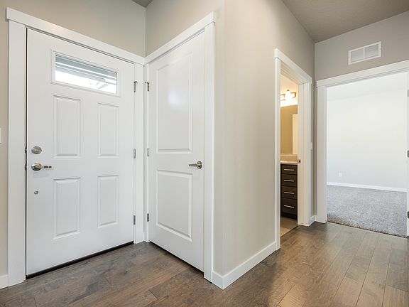 This bright and airy single level layout offers many windows for natural light all day long and generous hardwood flooring. The great room, kitchen and large eating area all centrally located, so conversations and/or entertaining flows easily. Unexpected storage can be found throughout; a walk-in pantry offers a laminated shelf with outlets for extra kitchen appliances, and the oversized laundry room features its own closet and adjoining mudroom. The master suite has a short hallway for privacy, while the third bedroom flexes as a den/office off of the entry, with the oversized second bedroom near the main bath. The large partially-covered patio off the eating area with the atrium door seems to invite the outdoors in. ~~ PLEASE NOTE: This floor plan is available to purchase two weeks before "move-in ready," we are not accepting pre-sales or reservations. Thank you. ~~
