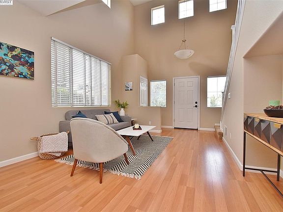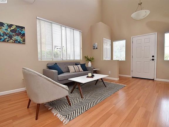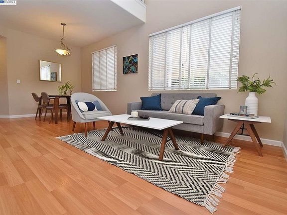 Light, bright, updated home in a private, peaceful Castro Valley community. Features 3 spacious bedrooms, 2.5 baths and a loft that could be converted to a 4th bedroom. Entertaining will be a pleasure in the combo kitchen/family room with stone counters, gas stove and breakfast bar. Fresh paint throughout, easy to care for laminate floors downstairs, wood burning fireplace in living room, air conditioning, Nest system, indoor, upstairs laundry and attached, two car garage are just a few of the many amenities of this home. Great location ??? close to shopping, parks, award winning schools, freeways and BART