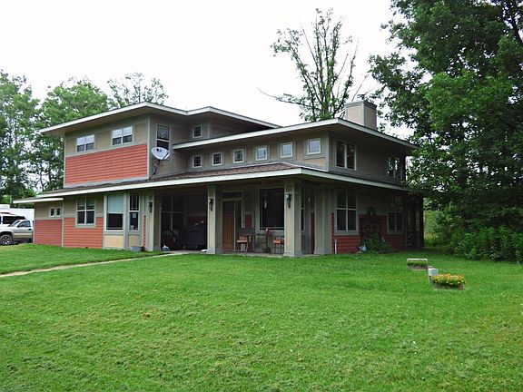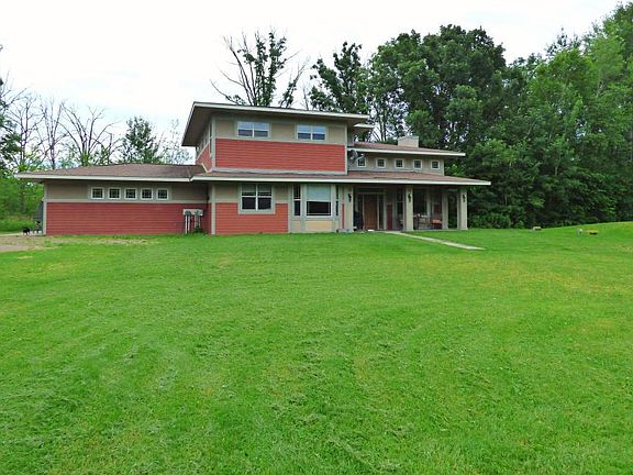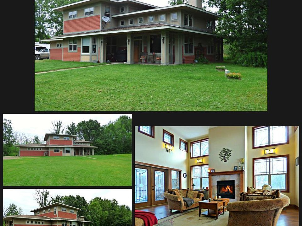 Custom built home (2007) with in floor heat, geothermal, dual fuel & wood burning fireplace. Handicap accessible on main level with 36"+ doors. Main floor full master with laundry. Custom woodwork and cabinetry with built-ins. Large great room with fireplace and 14' ceilings. Bonus 25x15 rustic cabin with wood freestanding stove. Excellent 43 acres of heavily wooded land with pond. Trails throughout property. A must see for a nature enthusiast.