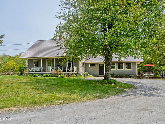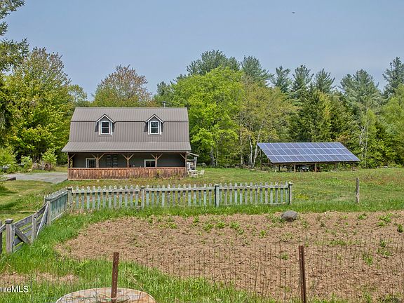Welcome to Stonewall Farm, a sanctuary of privacy on 46+ magical acres. Situated at the end of a dead end road, it features open meadows, pastoral views, lovely gardens, stonewalls and streams. Extensive hiking/mtn biking trails meander through the property and connect to miles of local trails. This Lovely Cape features a sun-lit family room, cathedral ceiling and sliding glass doors to a goshen stone patio. An eat-in kitchen with walk-in pantry opens to the dining/sitting area with a fireplace/woodstove. Other rooms include cozy den, office, 2 full baths, 3 bedrooms, 2nd floor fireplace & upper deck. 1700+ sq ft fully insulated and heated garage/shop with second floor studio has limitless work from home possibilities. 10KW solar array, rustic sleeping cottage, and more!