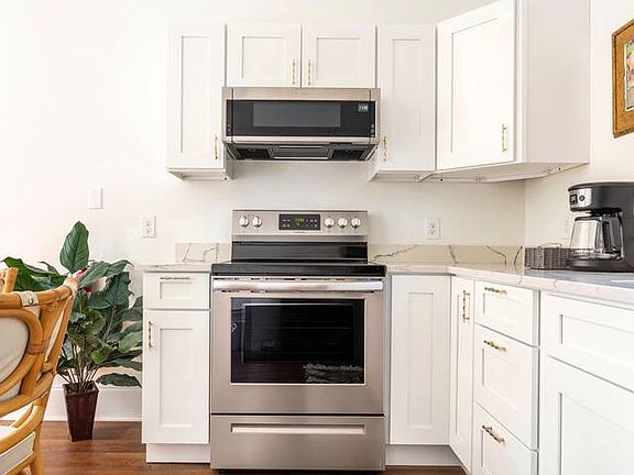 Feel perfectly at home in the Sunrise Cottage. Ideal for a single traveler or couple, this peaceful 1 bed/1 bath unit has just been completely remodeled, is fully furnished, has a fully stocked kitchen and stacked washer/dryer and is an easy 10 minute walk to downtown Asheville. Monthly rent covers a monthly cleaner, utility ( water, energy, gas), sanitation costs and wifi. Our neighborhood is the charming Chestnut Hill Historical District of downtown Asheville. We are an easy 10 minute walk to the main area of downtown, a 12 minute drive to the Biltmore Estate, a 15 minute drive north for the Blue Ridge Parkway and Folk Art Center, a 15 minute drive to the NC Arboretum (Discount Shoes is on the way) and the BRP headed South to Mt Pisgah, a 10 minute drive to the River Arts District, a 5 minute drive to the breweries of the South Slope and 22 minute drive to the Asheville Regional airport. Put your feet up for a spell and enjoy watching the fireflies from the private patio which looks out at Town Mountain . This fresh and stylish space features an open-concept living area. The newly renovated bathroom features a marble-top vanity and a medicine cabinet mirror for extra storage. The utility closet is perfect for storing your luggage (up high) and has several shelves for additional storage of personal items or clothing. We provide guests with a portable vacuum, broom, step stool and starter cleaning supplies. The cozy queen-sized bedroom has an open closet with lots of hangers, and a dresser. The two bedroom windows have the privacy of being "in the trees" as well as pull down shades. Keep it simple at this peaceful and centrally-located place. The lease comes with one parking spot in the driveway and many guests also have enjoyed the free street parking (ourselves included) which sometimes can be more convenient than backing out of the main driveway. When pulling into the driveway, the parking spot for guests is on the far left of the property (closest to the cottage). The Guesthoue has its own small patio with an outdoor table for two that looks over a large private backyard. Sunrise Cottage is a completely separate building from our main house and thus completely private. Other things to note We are a family of 4. We have two small children and an older dog we do play outside in the backyard every day. We are not overly noisy but always want guests to be aware of the fact that there may be children in the backyard. We are currently refurnishing so furnishings will be different than pictured but expect style to be similar and elevated! Will consider pets dependent on breed and size. Owner will pay for monthly cleaner using non-toxic cleaning products. Owner will cover all utility and sanitation costs. Wifi is included.