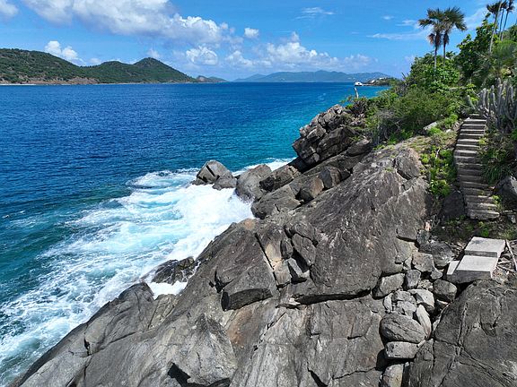Peace of Mind Villa is a private gated 6-bedroom / 5 bathroom on almost 2 acres located on the East side of St Thomas about 5 minutes outside of the Red Hook area with gorgeous down island views. This fully air-conditioned villa (each bedroom has its own split unit) yet enjoys cooling trade winds should you wish to turn off the AC and enjoy the natural breezes and stunning ocean views. Walk down to the Atlantic ocean through the rustic tropical path and enjoy a private sunrise or sunset or you can simply sit on the bluff down below the main house and feel the ocean breeze- You will get lost in the Azure blue ocean views!
