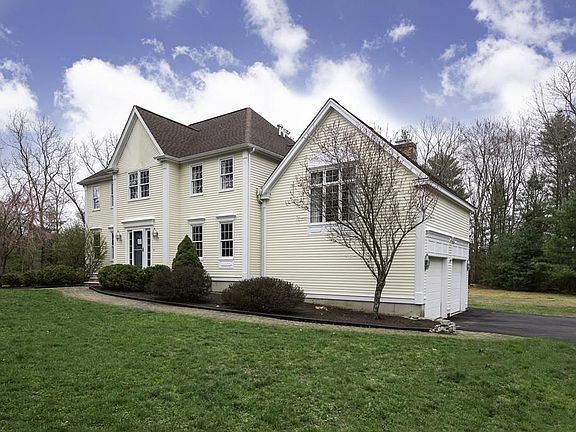 Offered for the first time is this well-maintained colonial on Bayns Hill! Navigate to the end of the winding drive and be greeted by this custom, hip-roof Colonial Revival located at the top of the desirable Bayns Hill neighborhood. 3,275 square feet of living space on 6+ private acres offer seasonal views of the Boston skyline and a large private yard. Finely appointed kitchen includes stainless appliances, granite countertops and cherry cabinets flowing to a well-lit breakfast area. Fireplaced large great room is perfect for entertaining. 3 bedrooms plus master provide living space for a growing family. French doors invite you to the bright, cheery office/library while extensive ornamental moldings throughout the 1st floor including dental molding in the master bedroom, crown moldings in the office, living room, kitchen and formal dining room with wainscoting. Framed yet unfinished basement offers room to expand inside while outside you'll find a blank palette for your imagination.