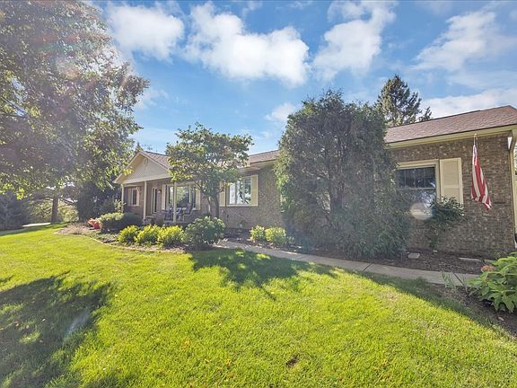 STATELY CUSTOM BUILT RANCH HOME. THIS HOME SITS ON A CORNER LOT 2/3 ACRE M/L SURROUNDED BY MATURE MAPLE AND EVERGREEN TREES IN A SMALL COUNTRY SUBDIVISION OF CUSTOM BUILT HOMES..4 MILES FROM DOWNTOWN HAMPSHIRE AND 3 MINUTES FROM I-90 ACCESS. THE MAINTENENCE FREE EXTERIOR IS BRICK AND HARDIE BOARD SIDING. THE LARGE COVERED FRONT PORCH HAS PLENTY OF SPACE TO SIT AND TAKE IN THE BIRDS AND THE BEAUTIFUL TREES AND WATCH THE CORN GROW ACROSS THE ROAD. THE INTERIOR OF APPROXIMATELY 1900 S.F. HAS 3 BEDROOMS AND 2 1/2 BATHS.THE LARGE FAMILY ROOM HAS A MASONRY FIREPLACE WITH A GAS LOG. THE LIVING ROOM FEATURES A MASONRY WOOD BURNING FIREPLACE AND LOOKS OUT TO THE STONE AND PAVER PATIO PROFESSIONALLY LANDSCAPED TO BE ENCIRCLED BY A FLOWER GARDEN. THE KITCHEN HAS GRANITE COUNTER TOPS AND AN EAT-IN AREA. ADJACENT TO THE KITCHEN IS A LOVELY FORMAL DINING ROOM. THIS HOME HAS A FULL BASEMENT WHICH IS HALF FINISHED TO INCLUDE A HALF BATH. THE UNFINISHED PART OF THE BASEMENT INCLUDES A UTILITY ROOM, A WORKSHOP AND LOTS OF STORAGE AREA WITH BUILT-IN SHELVING. THE MATCHING SHED IN THE BACKYARD IS LARGE ENOUGH TO HOLD A LAWN TRACTOR , MOWER AND OTHER YARD EQUIPTMENT.