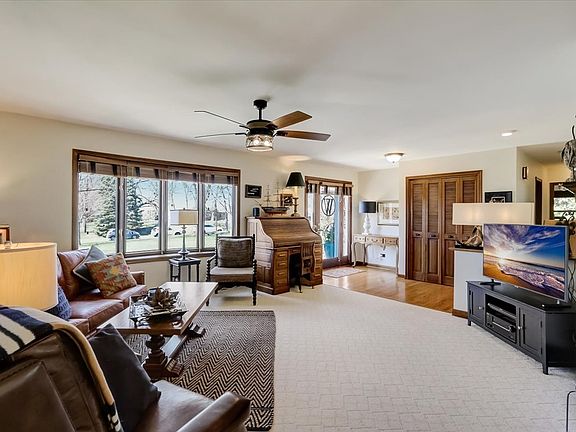 Stunning curb appeal with custom landscaping, mature trees, lush green grass and a long driveway! This huge lot is well maintained featuring a shed that matches the house & an oversized patio that is perfect for hosting large parties. Inviting glass front door. Hardwood flooring in the foyer and kitchen. The kitchen has an oversized peninsula which provides extra seating. You have an abundance of cabinet and counter space. Oversized skylight lets in a lot of natural light. Cute brick corner fireplace. The 4-seasaon room is very comfortable and overlooks the tranquil backyard. Open living and dining room. Extra cabinet space and sink in the laundry room. The Primary bedroom has an ensuite bathroom. All the bedrooms are good size. The full finished basement has that warm cabin feel. You will love hanging out at the wood bar that is joined with the rec room and cozy brick fireplace. There are two large rooms one is currently being used as a bedroom the other as an office. Half bathroom in the basement. A large majority of Cedar Siding was replaced in 2016. Most Windows replaced in 2018. 2016 Furnace, A/C, Water Heater 2018 Roof & Windows. This is a very charming house. Pride of ownership really shines through! Come Tour Today!