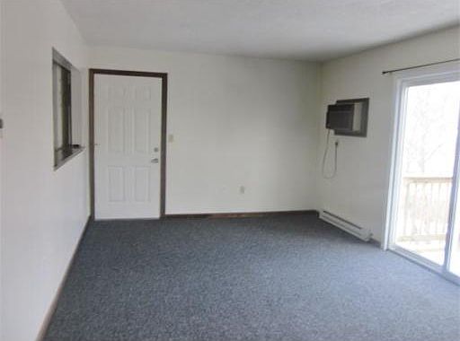 Spacious 2 bedroom apartment on 3rd floor. Extra large living room with balcony. Large eat in kitchen with stove and dishwasher. Built in wall air conditioner. Coin op in basement. Electric heat. No dogs, not even small ones and ones better than cats. Cat only. Back deck with slider near riverfront.