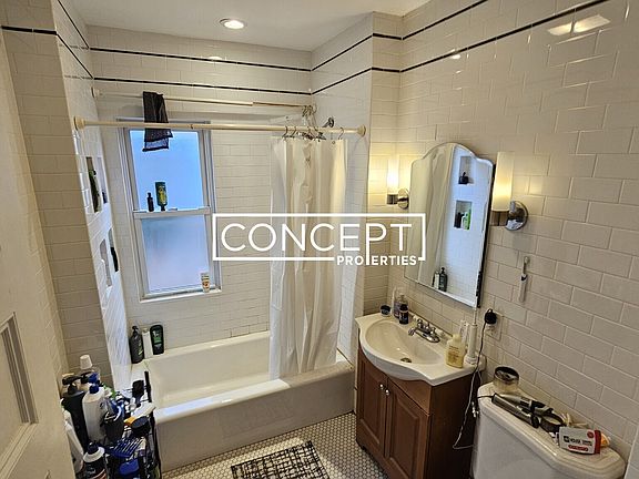Completely updated, two level apartment with modern, fully-applianced kitchen, 3 full bathrooms, central air conditioning washer and dryer, gleaming hardwood floors, off-street parking, large rooms, clean and sunny throughout!