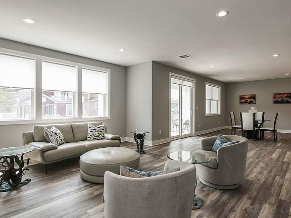 Welcome to North Beach in Ventnor. This spectacular fee simple townhome is over 2500 sq. ft., Two short blocks from the beach and boardwalk. This home is only less than two years old that includes four bedrooms, 3.2 baths, and a two-car garage with two additional parking spaces, including an electric vehicle charging station in the garage. The first floor has an oversized open-floor concept. Throughout the house, shaker paneled cabinetry, stainless steel appliances, vinyl windows, and sliding glass doors. , Quartz countertops throughout the kitchen and baths, Level six LVP flooring throughout the home, Enclosed outside shower, Beautiful landscaping that includes sprinkler system. Dual zoned climate control heating and cooling system. Plenty of storage space throughout each floor. The third floor comes with a bonus room that can be used for an office, workout room, or simply an additional room for guests with its own en-suite—Location, Location, Location. Home does not get any better than this. Close to restaurants, shopping, and entertainment. This home backs up to a private gated urban oasis. "Memory Park" is for anyone living in the North Beach district area and has access to the green space seven days a week. The property includes Tax Abatement and a 10-year HOW Warranty. Be the first to preview.