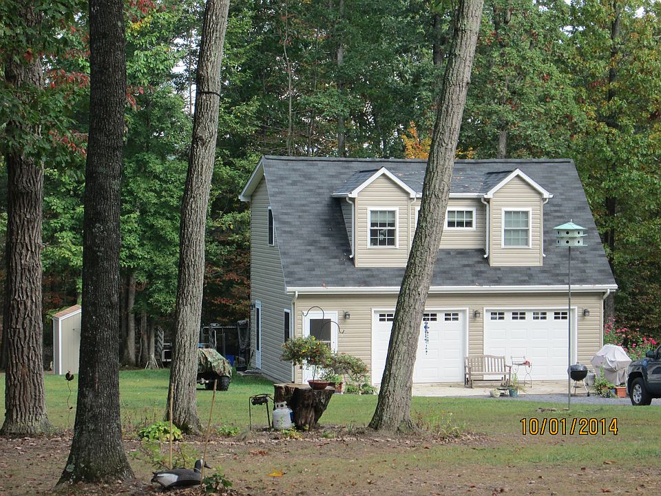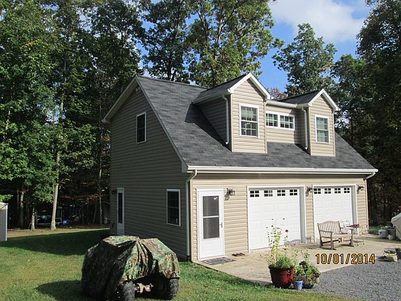 Enjoy a beautiful escape in the hills of West Virginia. Take in the abundant wild life that surrounds you on the 22+ wooded acres with creeks boarding 2 sides of the property in a peaceful setting. There is currently a carriage house that has a 600 foot apartment on the top level which consists of a bedroom with a walk-in closet, a full bathroom and a kitchen/dining/living room. Downstairs is another 600 feet which has been totally finished with drywall and trim: it was used as an office but can be used as a 2 car garage or with carpet- used as another living space. We built this in mind of using as guest quarters after we built our dream home which was to be attached.On the property are other buildings: (all buildings are vinyl sided and wrapped in aluminum to match & except for the outhouse which is painted: truly almost maintenance free)-&A 26&X24& outbuilding with a bunk room, wood stove and full cabinets(with electric)-&A wood shed which will hold 6+ cords of wood-&A potting shed/art studio and a chicken coop surrounded by a 75&X50& 6& fenced in garden. (shed has water and electric run to it.)-&An flushable outhouse which is hooked up to the septic system and has electric and heat (great for those outside parties!)We&ve started the landscaping and gardening by adding pear, apple and peach trees, an asparagus bed, white and purple grape vines, blueberry bushes, burning bushes flower beds. There is also a beautiful gravel driveway that takes you the & mile off the road to your home site.