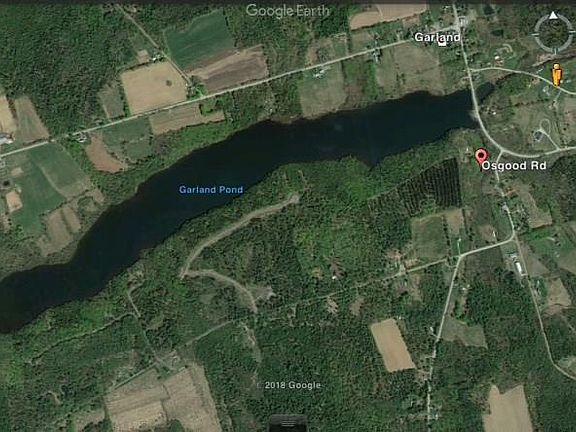 Garland Pond waterfront acreage. Nice 20.0 acre surveyed wooded lot on the pond with 2150 feet of shore front. Property is accessed from the Osgood Road. Great opportunity to purchase a large waterfront lot for your camp or home. This lot is located within 30 minutes of Bangor. Garland Pond is a shallow water pond with bass and pickerel. The pond is narrow and is approximately 2.5 miles long and is 102 acres in size. A public boat launch is located just across the pond. If your looking for a large private waterfront lot at a reasonable price then this it the lot you are looking for. Property has been surveyed and there is potential for several lots. The survey plan is available. Call today!!!!