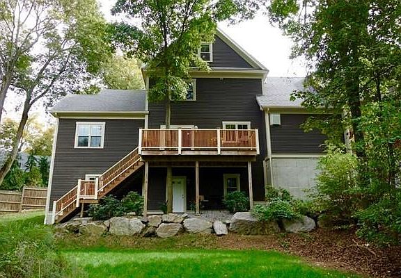 Tucked at the end of a quaint courtyard, this pristine Townhome offers the luxury of single family living and the convenience of a professionally maintained community. Main level features open floor plan with chef's kitchen, Viking stainless steel appliances, granite counters and island, family room with library, wet bar, wine refrigerator and separate sitting area, large deck overlooks Sudbury aqueduct and is surrounded by trees. Master with large walk-in closet and master bath with jacuzzi. Above-ground lower level with bedroom, full bath, 9' ceilings and separate entrance for use as in-law or au-pair suite. Large open third floor with wetbar, wine refrigerator and powder room. Gas fireplace, central vac, crown molding, built-in surround sound, tank-less water heater and energy efficient. Commuter's dream convenient to Route 9 and Route 95 and Elliot T Stop, close to shopping, parks and walking distance to Newton Highlands. This hidden gem can't be missed!