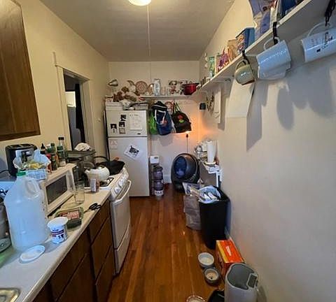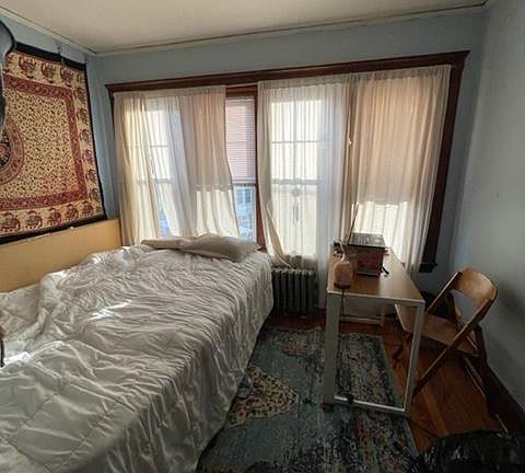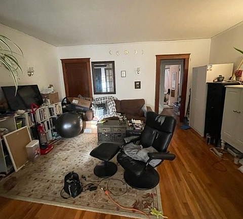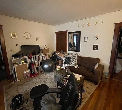 Second floor large studio almost a one bedroom hardwood floors . small bedroom normal size livingroom , galley kitchen, with access to a great back porch . Great location quiet culdesac steps away to Main st close to the T . March 01 occupancy . one closet . non smoking . rent includes hot water . tenant pays for gas heat and cooking . as well as electricity one pet only